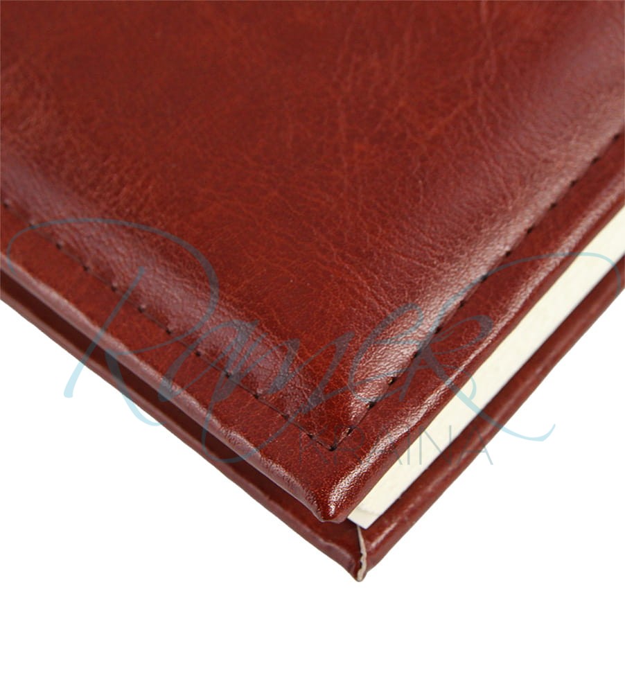 Okładka wykonana jest z eleganckiej ekoskóry w ciepłym, brązowym kolorze. Miękko połyskuje i wygląda bardzo stylowo, a przy tym jest trwała i odporna na przetarcia.