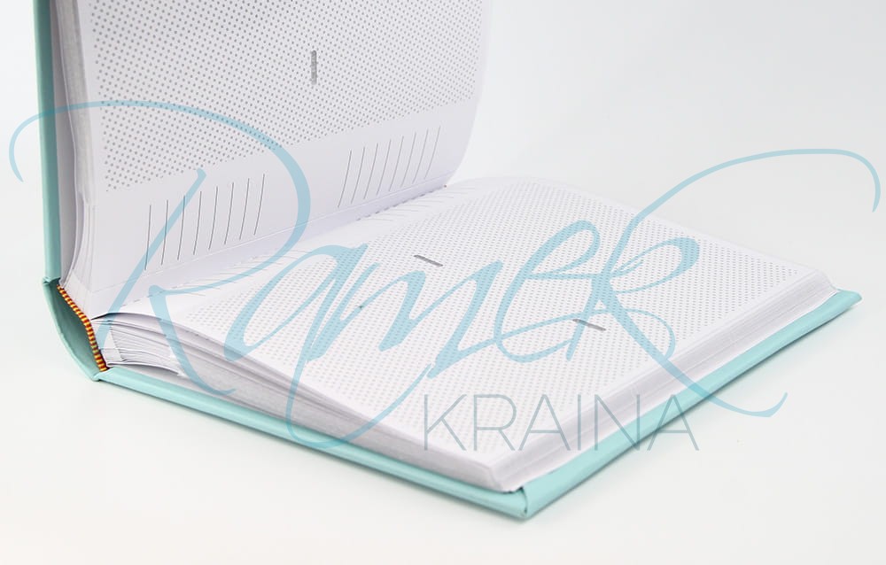 Strony albumu są sklejone dodatkowo ich brzegi są przeszyte.