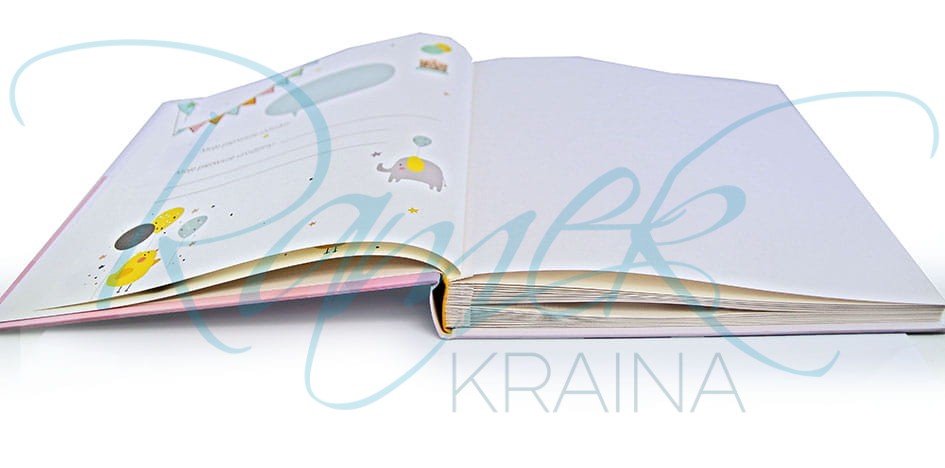 Na początku albumu są 4 strony w języku polskim tzw. metryczka maluszka. Można na nich wpisać podstawowe informacje tj. imię, data urodzenia, moi chrzestni, moje pierwsze słówko itp.