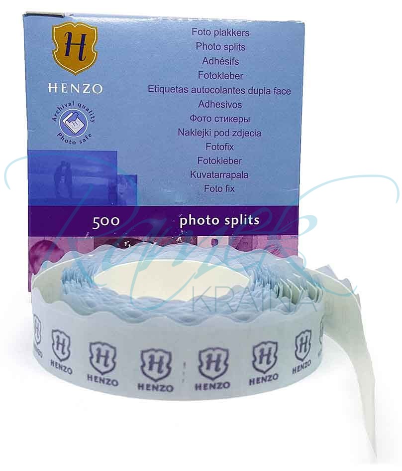Foto przylepce służą do wklejania zdjęć do albumów klasycznych, czyli posiadających karty z papieru i pergaminu. Naklejki mają kształt prostokątny o wymiarach: 17x13 mm. Z obu stron posiadają klej. Są cieniutkie dlatego nie powodują wyginania się zdjęć jak w wypadku stosowania zwykłej grubej taśmy dwustronnej. Dzięki wygodnej formule wyciągania pojedynczych przylepców bardzo ułatwiają oraz przyspieszają pracę nad wklejaniem zdjęć do albumu. Przylepce Henzo są dwuwarstwowe - czyli jeżeli pomylimy się lub zechcemy wymienić zdjęcie jest możliwość bardzo delikatnego oderwania zdjęcia od karty. Jedna z warstw zostanie na karcie a druga na zdjęciu.