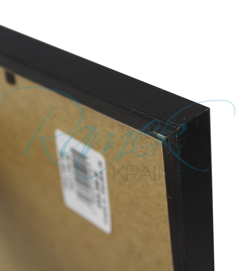 Drewniana ramka z białym passe-partout. Ramka ma klasyczny, prosty kształt. Będzie pasowała do większości wnętrz. Czarny kolor będzie ładnie podkreślał zdjęcie. Szczególnie polecamy do czarno-białych zdjęć.