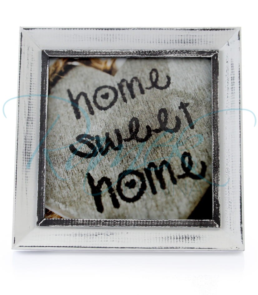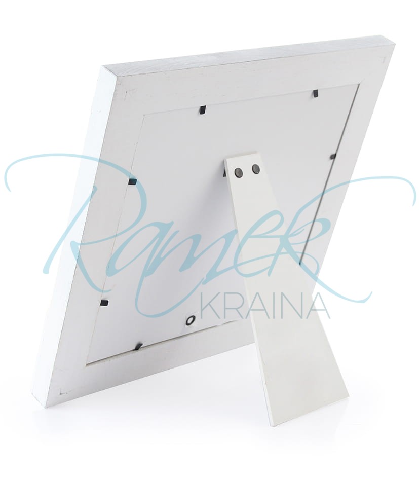 Drewniana, biała ramka z przetarciami do kwadratowego zdjęcia
